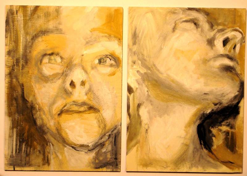 Ocker Angesicht I+II, Mischtechnik auf Sperrholz, 21 x 30 cm, ,